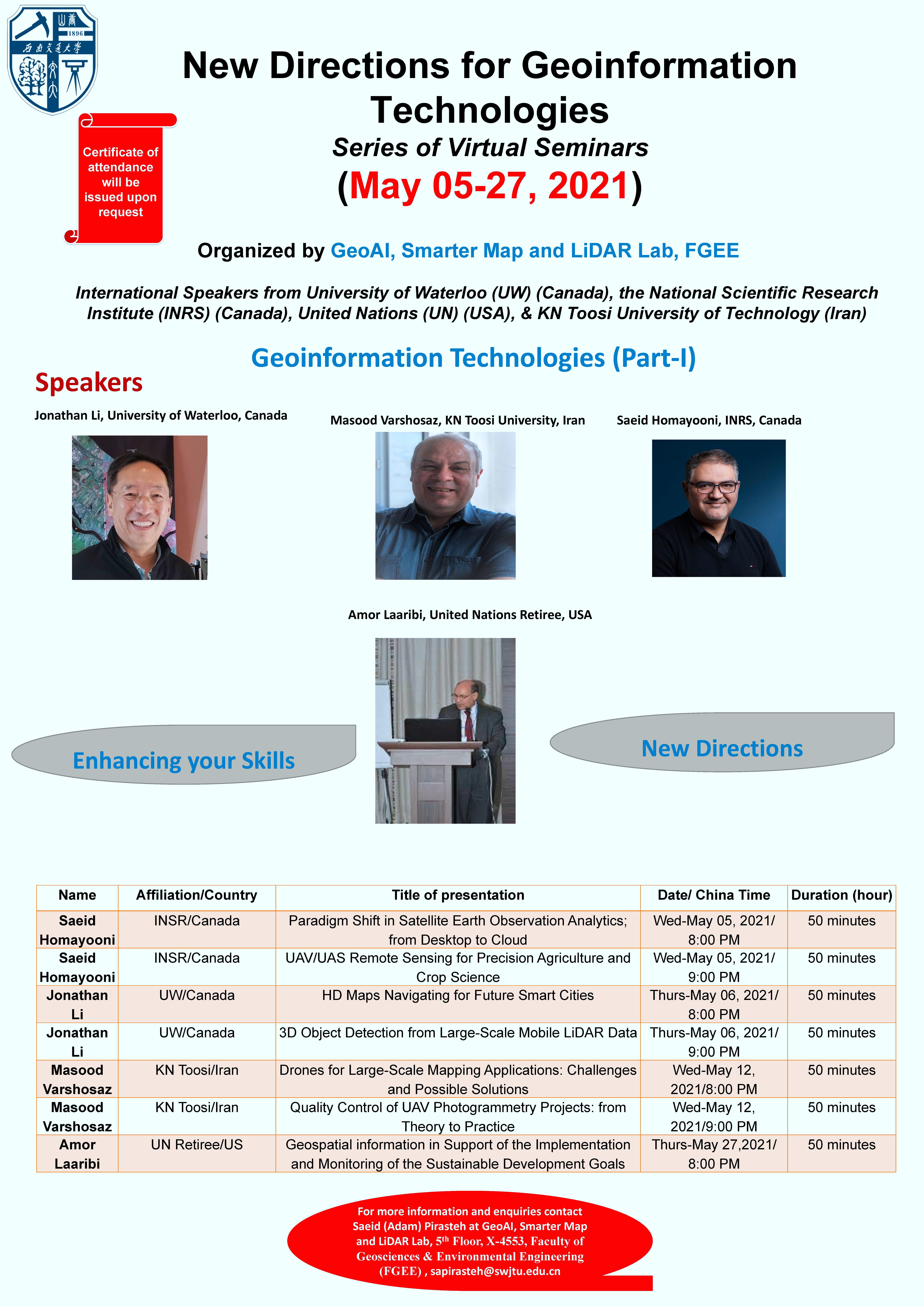 New Directions for Geoinformation Technologies Series of Virtual Seminars (May 05-27, 2021)