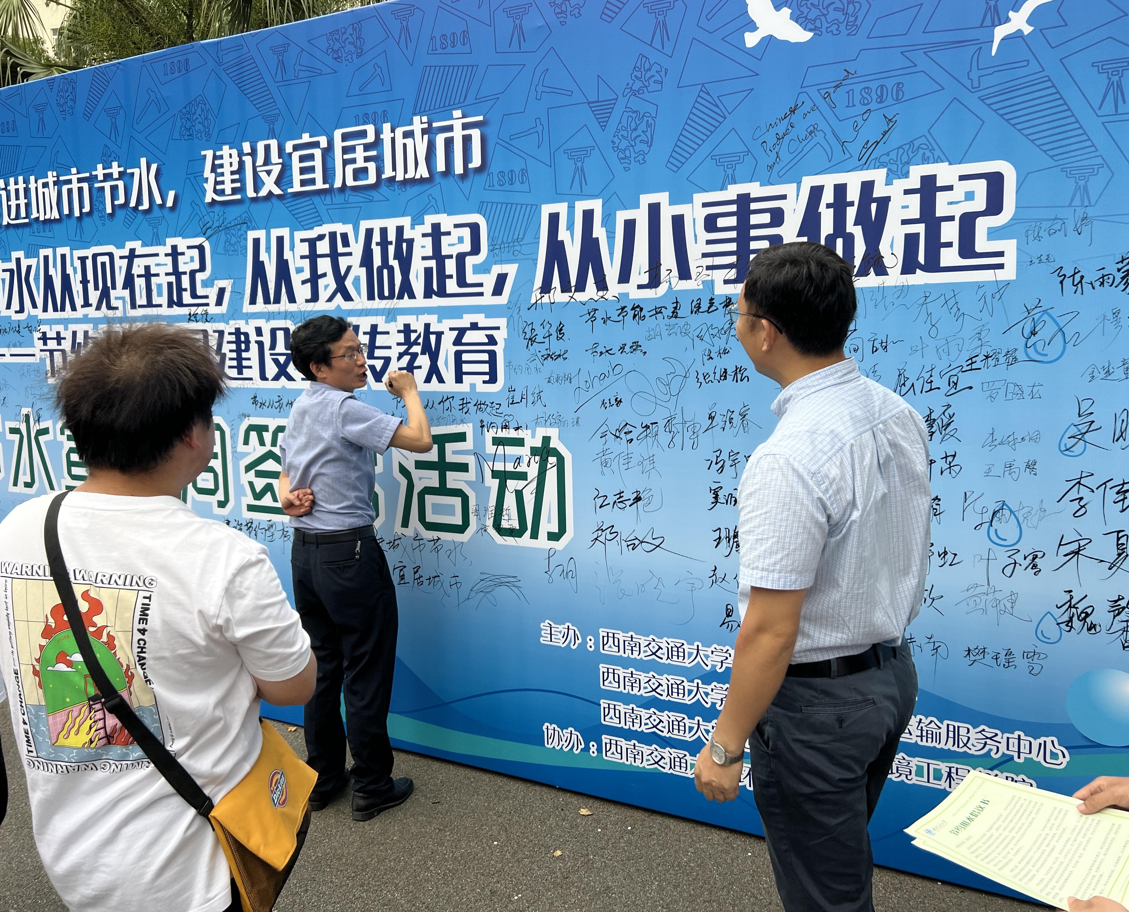 为深入学习贯彻落实国家住房和城乡建设部《关于做好2023年全国城市节约用水宣传周工作的通知》文件精神,2023年6月1日,由地球科学与环境工程学院与维修、水电及运输服务中心(西南交通大学节能办公室)联合主办,在西南交通大学九里校区开展了主题为“推进城市节水,建设宜居城市”的节水宣传活动。