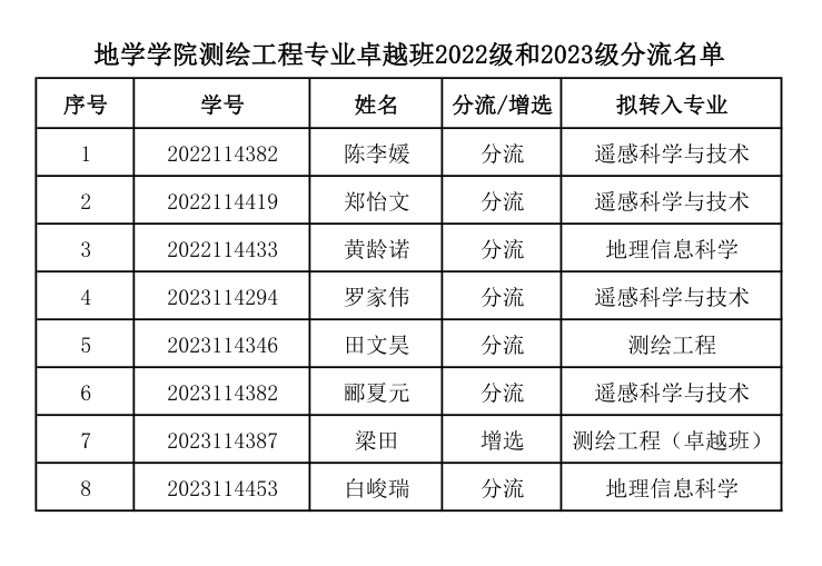 韩国漫画 测绘工程专业卓越班2022级和2023级分流名单
