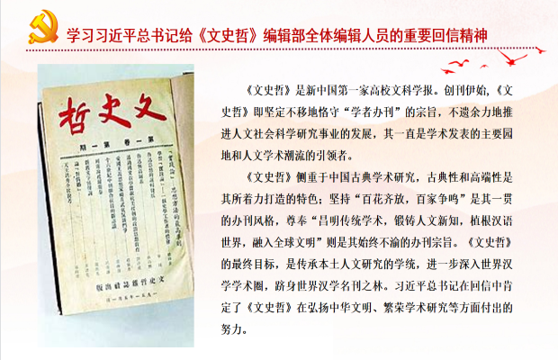 会议开始阶段,冯媛橼同志向党支部成员介绍了《文史哲》。《文史哲》是新中国第一家高校文科学报。创刊伊始,《文史哲》即坚定不移地恪守“学者办刊”的宗旨,不遗余力地推进人文社会科学研究事业的发展,其一直是学术发表的主要园地和人文学术潮流的引领者。