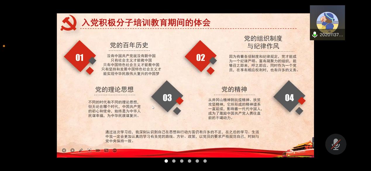 会议开始前,仁真严木参同志清点了参加“推优入党答辩”大会的人数,支部有正式党员4人,预备党员18人,本次大会的到场人数为正式党员4人,预备党员18人,正式党员出席超过半数,满足大会开启的先决条件。介绍了本次答辩会议的目的和议程后,17位候选人依次进行了自我陈述及PPT展示,主要从入党动机以及接受入党积极分子培养教育期间的认识和体会、思想政治、道德品行、作用发挥、执行纪律等方面阐释了自身的现实表现情况。每位候选人在思想上积极向党组织靠拢,认真学习党的指导思想和路线、方针、政策,现实表现良好。