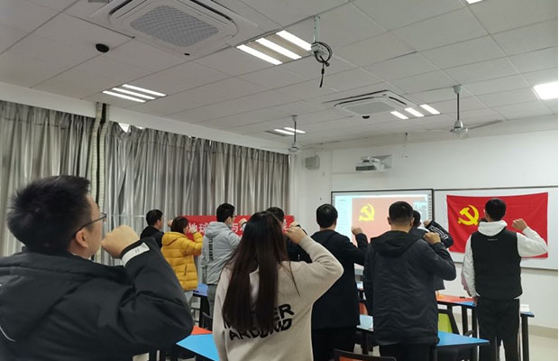 然后,组织委员包馨将投票情况进行统计,同意接收田骕和栗帅帅同志为中共预备党员的各有16名(含会前征求意见情况2票),同意票数超过应到会有表决权的正式党员的半数,表决通过。蒲伦分别宣读了党员大会对田骕、栗帅帅两位同志的表决决议,田骕和栗帅帅同志分别对支部的决议进行表态。最后,组织委员包馨带领大家宣读了入党誓词。预备党员接收大会到此结束。