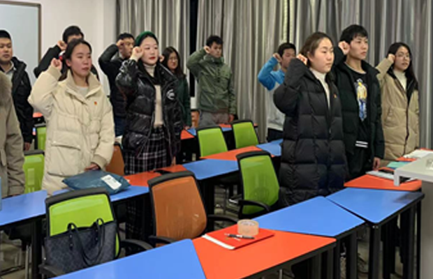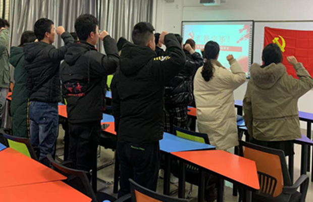 为增强新党员的党性观念、历史使命感和社会责任感。与会全体党员肃立,面对党旗进行庄严的入党宣誓。最后党支部书记罗越扬同志进行总结发言,她首先对成功转为正式党员的同志们表示衷心的祝贺,同时希望党员们不忘初心,严格待己。遵守党的规章制度,养成良好的习惯。在各方面不断提高自己,保持坚定的政治立场,旗帜鲜明,争取为社会主义现代化建设贡献更大力量。