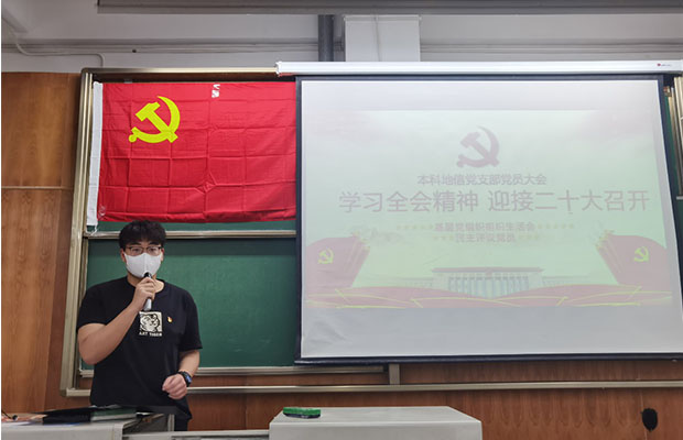 2022年3月17日19:30,西南交通大学地球科学与环境工程学院本科地信党支部于X4153开展了党员大会,主要内容为组织生活会和民主评议党员,旨在引导广大党员深刻认识“两个确立”的决定性意义,大力弘扬伟大建党精神,坚持自我革命,把思想和行动统一到党中央重大决策部署上来,以优异成绩迎接党的二十大胜利召开。