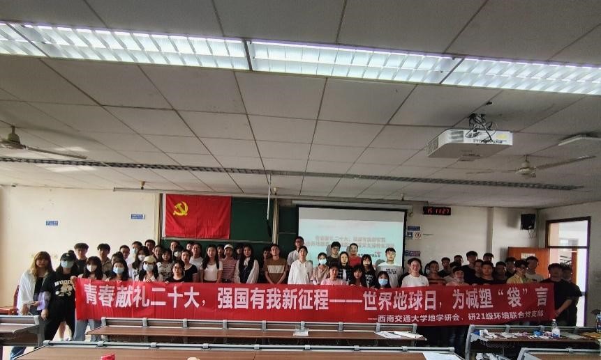 研21级环境联合党支部和研究生会组织学生党员于2022年4月22日开展“青春献礼二十大,强国有我新征程—世界地球日,为减塑‘袋’言”主题党日活动。