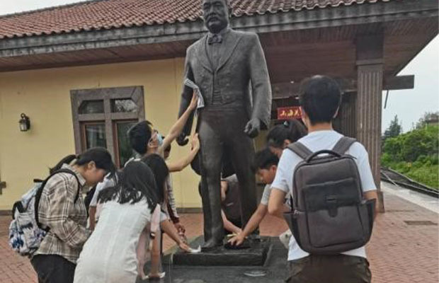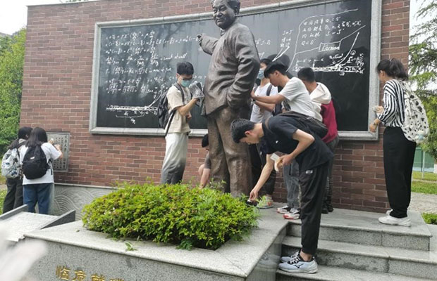 为了让学校雕塑得到清洁和维护、让校园环境空间变得更舒适,2022年5月8日早上九点半,本科遥感党支部在西南交通大学犀浦校区内开展“青春献礼二十大、强国有我新征程”主题志愿服务活动,党支部书记张雯清同志担任主持人,并邀请校园大使团担任嘉宾讲解雕塑历史。