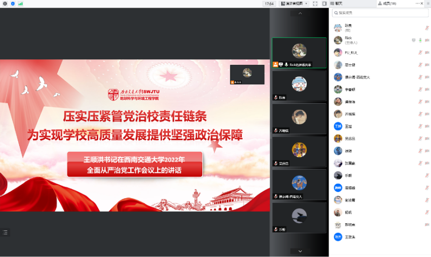 首先高颖介绍了王顺洪书记在西南交通大学2022年全面从严治党工作会议上的讲话,主要从深入学习贯彻习近平总书记在十九届中央纪委六次全会上的重要讲话精神和中纪委六次全会精神、学校2021年全面从严治党工作回顾、关于学校2022年全面从严治党重点工作三个方面进行了报告。