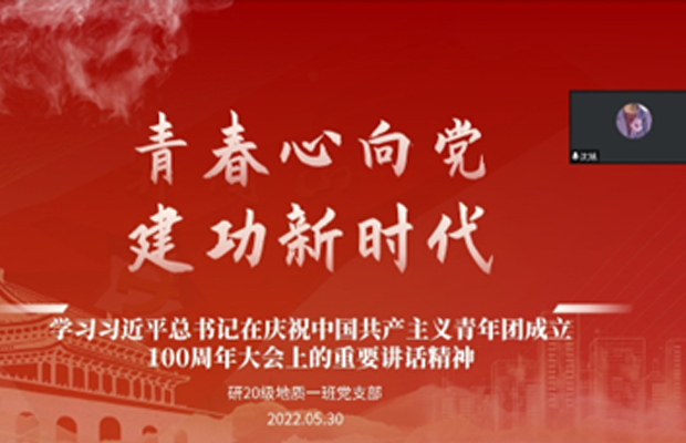 2022年4月25日,习近平总书记到中国人民大学进行考察调研,发表了重要讲话;2022年5月10日,习近平总书记出席庆祝中国共产主义青年团成立100周年大会,并发表了重要讲话。为深化支部成员对系列讲话精神的重大意义、丰富内涵、基本要求的认识理解,研20级地质一班党支部于2022年5月30日,开展线上“青春心向党,建功新时代”主题党日活动,进一步学习贯彻习近平总书记重要讲话精神。本次活动由邢本聪同志主持,支部22名成员与会。