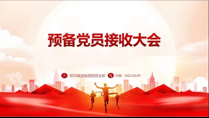 注入新血液,凝聚新力量。69午,20级测绘四班党支部在线上召开了预备党员接收大会,党支部书记周钰婷主持本次会议,党支部全体成员参加了会议。
