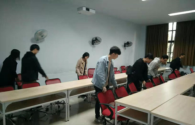 为让同学们在一个干净整洁的环境下学习,本次活动安排为打扫教室卫生、清洁黑板及摆放物品等。同学们集合完毕后,分组到九教9133913491359136四个教室打扫卫生。同学们都情绪高涨,在不打扰自习同学的前提下开始进行打扫,认真地擦黑板、抹桌子、扫地、拖地,每个人都不怕脏、不怕累。
