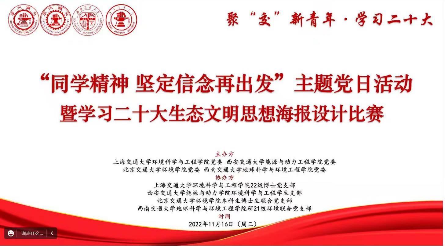 研21级环境联合党支部全体成员参加了本次活动,活动由上海交通大学环境科学与工程学院22级博士生王宏涛同志主持。