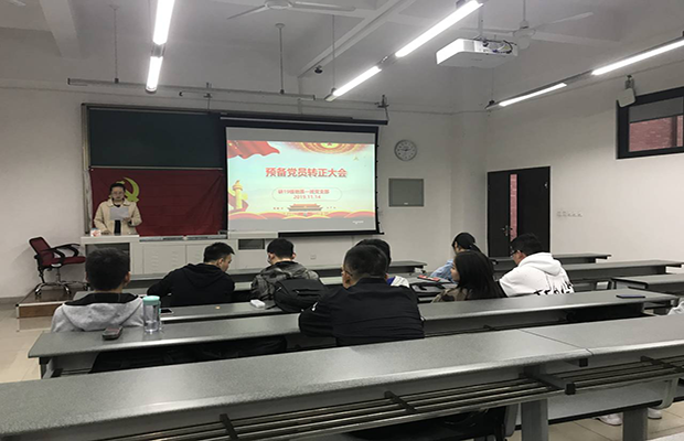 2019年11月14日18:30,地学院研19级地质一班党支部在X9136教室召开预备党员转正大会。本次会议由19级地质一班党支部书记姬彦东主持