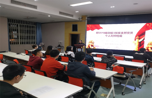 20191018日晚8点,研18级测绘三班党支部在西南交通大学犀浦校区X4243教室进行了党员自我检视活动。本次活动由测绘三班党支部书记陈诗雨同志主持,旨在通过本次活动让党员同志对自身存在的问题进行审视,进一步增强党员党性,完善自我。