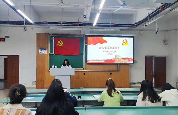 随后,三位同志的入党介绍人依次向大会发表介绍意见,与参会党员同志就三位同志预备期的表现发表意见和看法。紧接着支委会介绍预备党员在预备期的表现,与会党员充分讨论,通过无记名投票的方式对三位同志能否按时转正进行了表决,表决结果为全票通过。最后陈绣文、彭丹丹和朱靖宜三位同志针对大家的发言,表明了对支部决议的态度和决心以及今后的努力方向。最后,与会党员在李佳琪同志带领全体党员同志重温入党誓词。