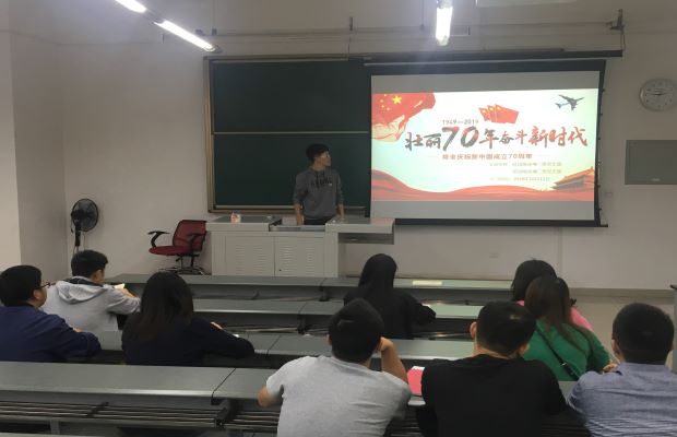 首先,由环境2班党支部书记邢少帅同志介绍了此次活动的主要目的,并且带大家一同回顾中华人民共和国这70年来的伟大成就,其中包括国家领导人的重要理论和改革开放的40个第一,让我们都不禁为祖国的伟绩骄傲和自豪。