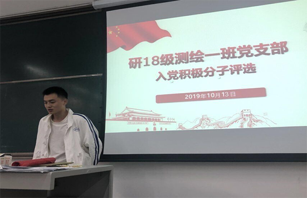 2019年10月13日下午16点,研2018级测绘一班党支部于西南交通大学犀浦校区X2225开展了“不忘初心,牢记使命”党员个人对照检视主题教育活动。本次支部大会由测绘一班党支书谢奇材同志主持。