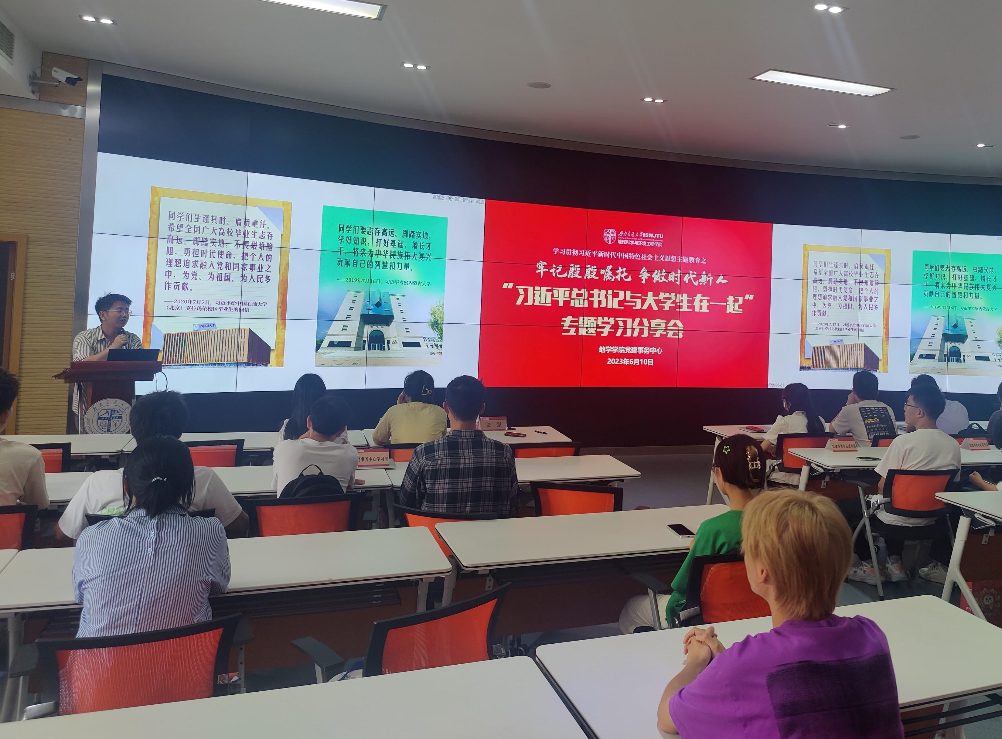 团委书记杨都强和学生党建负责人文强老师分别给学院第六次学代会代表和党建事务中心成员进行了“习近平总书记与大学生在一起”专题领学。通过两位老师的领学旨在引导院内的学生党员骨干以先进的知识理论武装头脑,汲取精神之钙,筑牢思想之魂,始终怀揣热爱,彰显青年本色,厚植爱国情怀。