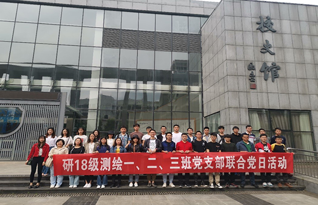 最后,测绘联合支部党员同志们在校史馆前合影留念,本次研2018级测绘一、二、三班党支部主题党日活动圆满结束。