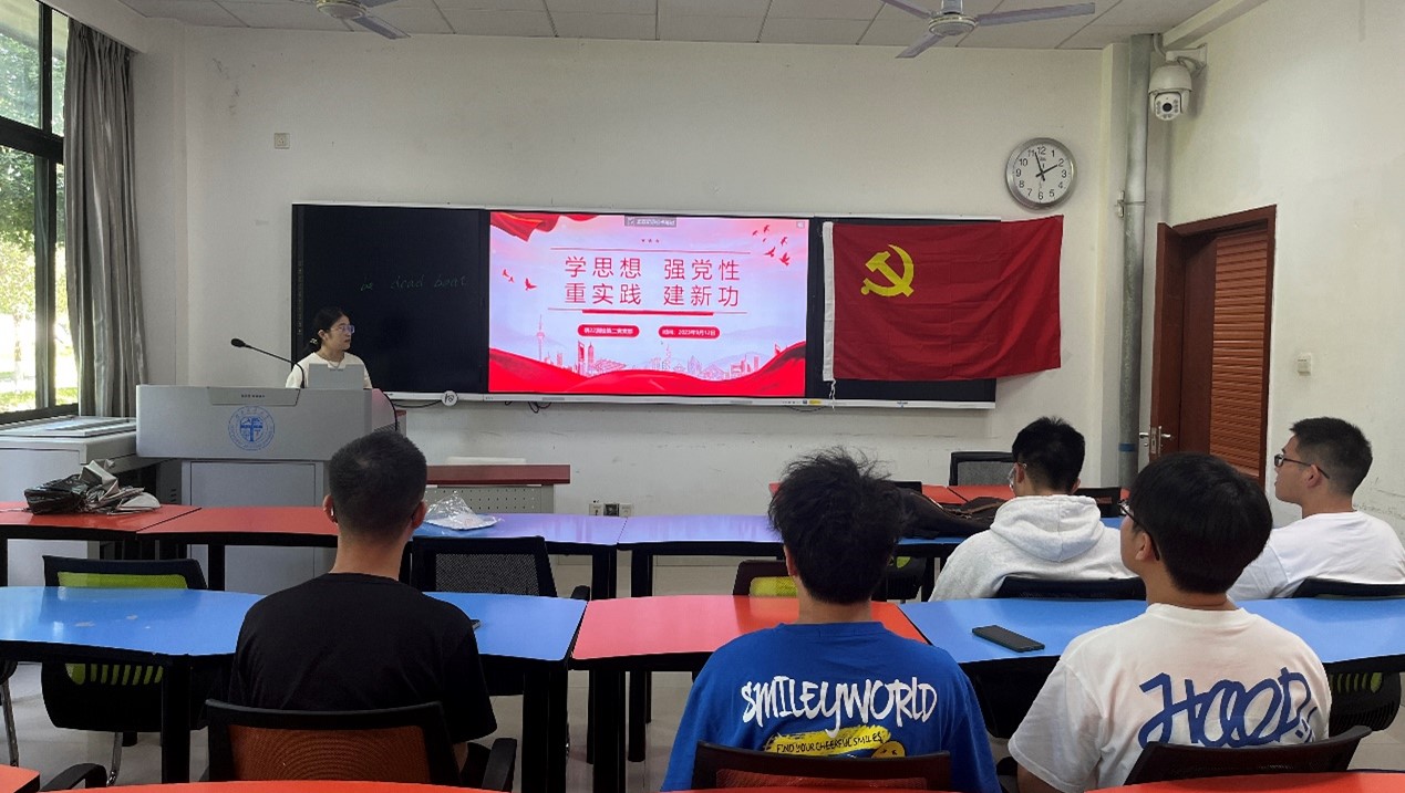 9月12日下午14点整,研22级测绘第二党支部在X4135教室顺利开展了“学习贯彻习近平新时代中国特色社会主义思想”主题教育专题生活会。本次专题生活会由党支部书记任颖同志主持,共有13名党员参加。