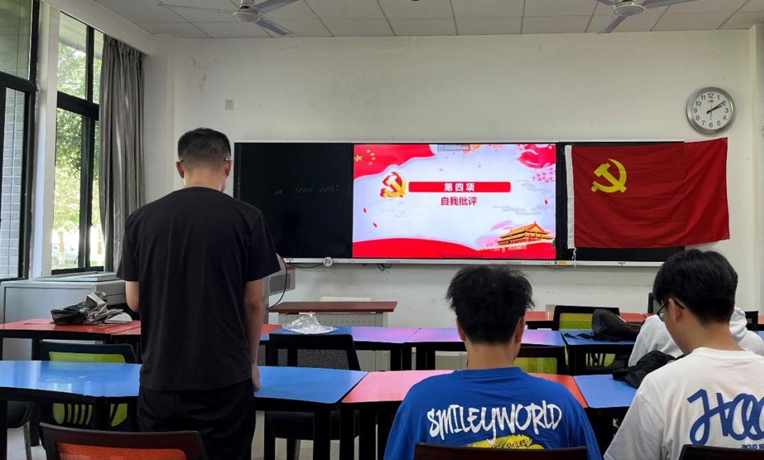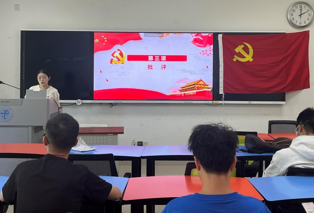 接着,党支部内部开展了“批评与自我批评”会。任颖同志带头进行自我批评,她讲到自己在学习“习近平新时代中国特色社会主义思想”的实际情况,以及在党支部工作中的遇到的问题和处理方式等,深入地对自己进行了剖析。并且对接下来的党支部开展的主题教育活动及生活会等做了规划,也强调会带动党支部内部的党员同志,更加认真地学习和踏实地工作,践行“学思想,强党性,重实践,建新功”的主题思想。在任颖同志的带领下,参会的党员同志都积极主动地进行批评与自我批评,并作出了自我改进的目标和计划等。
