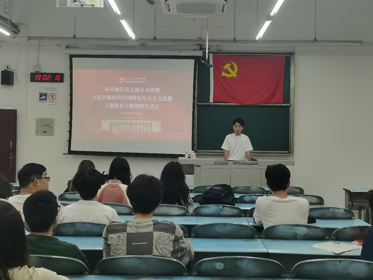 本科地信党支部于2023年9月11日 19:00在X2235召开学习贯彻习近平新时代中国特色社会主义思想主题教育专题组织生活会。本次大会由党支部书记曾祥珂同志主持,党支部全体党员参加。