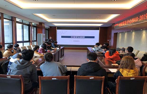首先由文强学长致辞。文强学长告诫党建事务中心的全部成员应将学习放在首位,并表示愿意为成员们提供学习和生活上的帮助,同时对全体成员表达美好的祝愿。