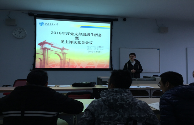 2019年3月8日,研16级测绘一班党支部全体成员召开了“2018年度党支部组织生活会暨民主评议党员会议”。本次会议下午3点在X9347教室准时开始,会议由党支部书记王铭庆同志主持,并且取得了圆满成功。