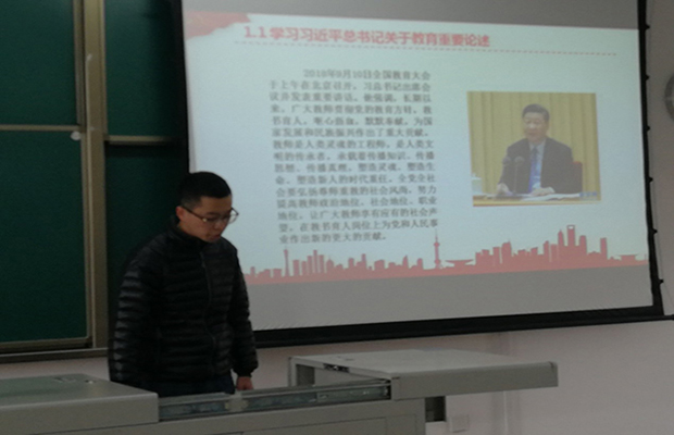 首先,按照《通知》要求,罗超同志通过现场PPT讲解和再次重温大会视频等方式,带领大家集中学习了习近平总书记关于教育的重要论述、在庆祝改革开放40周年大会上的重要讲话精神以及《中国共产党纪律处分条例》《中国共产党支部工作条例(试行)》相关内容。