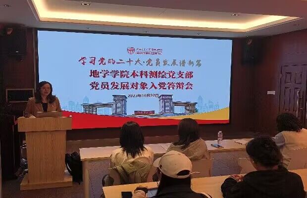为切实做好2023年发展党员工作,切实提高党员发展质量,本科测绘党支部于2023年10月22日19:00在犀浦校区X4520开展发展对象答辩大会,大会由党支部书记任纪州同志主持,李婧和陈荩娜老师出席并指导大会,本科测绘党支部共有党员26名,24名党员出席会议,超过有表决权党员数量的一半(未到场同志已严格履行请销假制度),会议选举结果有效。
