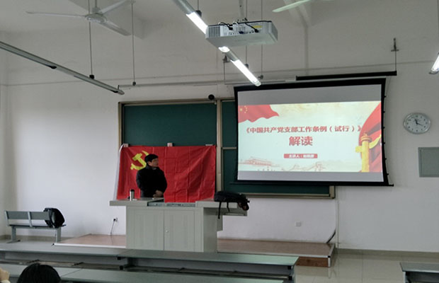 11月29日下午15:50,学习《中国共产党支部工作条例(试行)》的会议在X9505教室成功召开,出席本次会议的是研17级地质一班、二班、三班和研17级环境一班、二班、三班的党支部书记、委员、以及全体共产党员和入党积极分子。主讲人是地质工程系赵晓彦老师,赵老师就《中国共产党支部工作条例(试行)》的相关内容进行讲解,并与各位党员同志共同学习。