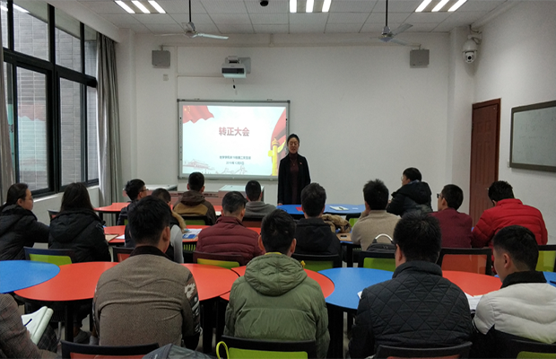 紧接着,三位同志依次上台向大会宣读《转正申请书》,汇报了自己在预备期间的思想动态以及各项表现,并表明自己加入中国共产党的态度和决心;随后党支部组织委员谷思文同志向大会介绍预备党员在预备期间的教育和观察情况,并提出能否转为正式党员的意见;紧接着大会成员对申请转正同志的表现进行讨论并充分发表意见;之后采用无记名方式对三位预备党员能否转正进行投票表决;由党支部书记杨乐宣布支部大会决议;最后申请转正的预备党员对支部大会讨论的意见或表决结果进行表态。