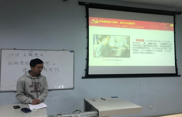为响应习近平总书记针对“弘扬爱国奋斗精神”作出的一系列重要指示,听从校党委组织安排,20181018日下午4时,研17级环境二、三党支部在西南交大犀浦校区X9133教室联合开展了弘扬爱国奋斗精神,建功立业新时代主题党日活动。在广大知识分子中深入开展“弘扬爱国奋斗精神、建功立业新时代”活动,是学习贯彻习近平总书记关于弘扬爱国奉献精神的一系列重要指示精神、加强团结引领服务知识分子的重要举措,对于建设一支矢志爱国奉献勇于创新创造的优秀人才队伍,把各方面优秀知识分子集聚到党和人民的伟大奋斗中来,形成不懈奋斗团结奋斗的生动局面,具有十分重要的意义。参加会议的主要人员有研17级环境二、三党支部学生党员、预备党员及积极分子。