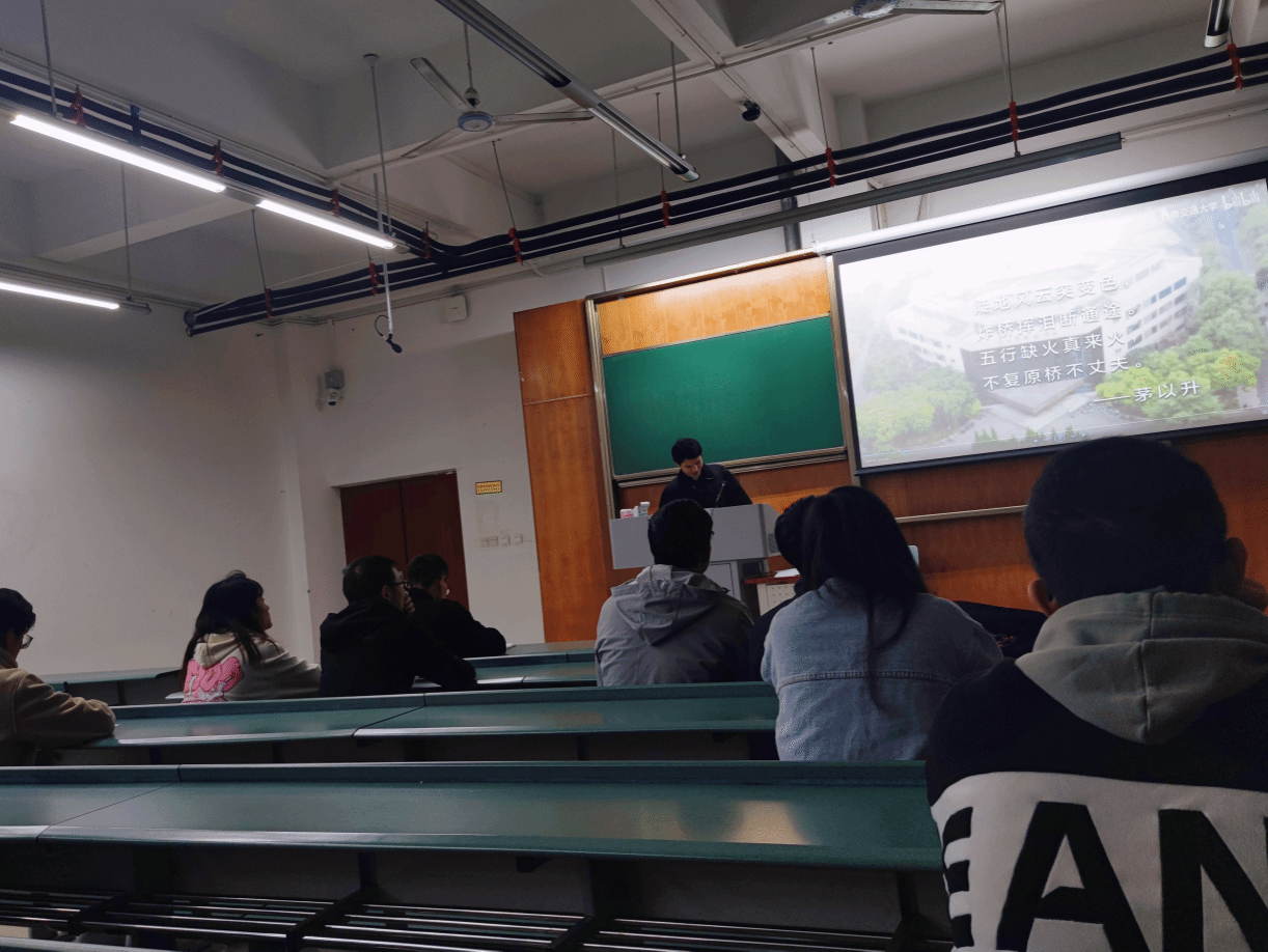 2023年11月27日晚上七点,研22级测绘第四党支部于X4153教室顺利召开了“赓续红色血脉,弘扬科学家精神”主题党日活动,本次活动旨在通过了解交大科学家事迹,积极传承和弘扬科学家精神,继承和发扬老一辈科学家胸怀祖国、服务人民的优秀品质,彰显新时代党员同志的责任与担当。本次活动由党支部组织委员刘森平同志主持,支部成员总计13人与会。