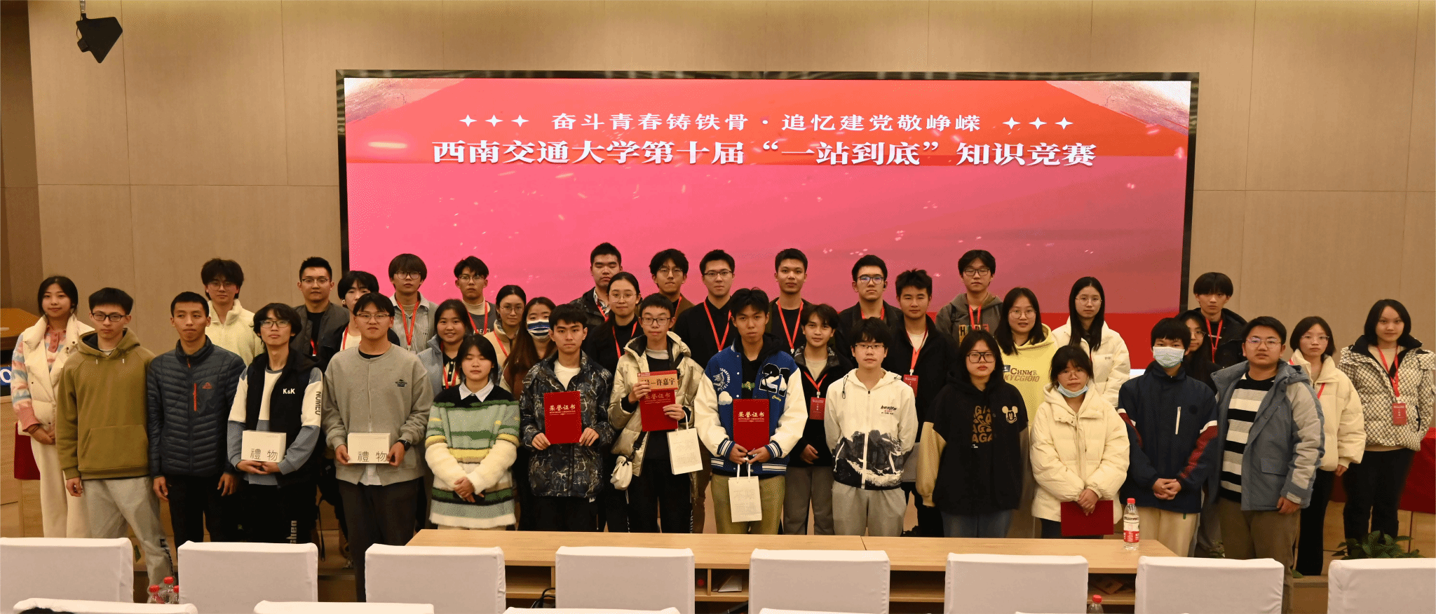 特于12月6日晚在犀浦校区图书馆二号报告厅举办“奋斗青春铸铁骨·追忆建党敬峥嵘”——第十届“一站到底”知识竞赛,紧紧围绕“党政军民学,东西南北中,党是领导一切的”思想,从多个知识面考察个人综合素质,出题涵盖古典诗词、传统文化、国家地理、自然科学、健康医疗等等。经过主办师生的精心筹备与不懈努力,活动在热烈的掌声中开幕。