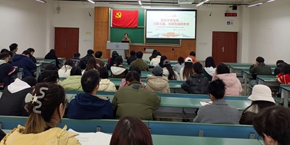 党委委员龚正君老师在X4154教室为研究生环境各党支部党员讲授政治理论专题学习会。
