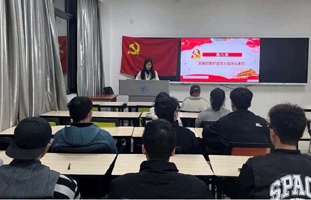 2023年12月7日19:30,研22级测绘第二党支部于X4129召开预备党员接收大会,对是否接收令狐文娅同志为预备党员问题进行讨论和表决。