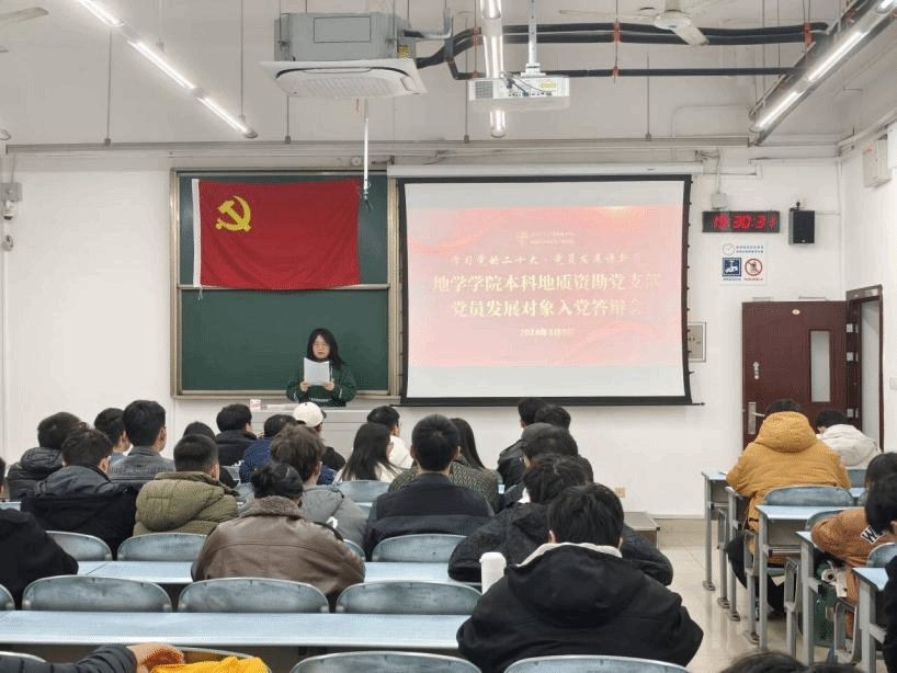 2024年3月9日晚上19:30,本科地质资勘党支部在X2221举行了2024-01期发展对象推优入党答辩大会。本支部共有44名党员,其中有30名党员出席了本次大会,有表决权的正式党员实到会人数超过应到会人数的一半,符合组织规定,大会有效。推优入党答辩是党员选拔的重要环节,党支部认真对待,充分考察了候选人的政治素质和能力水平,确保发展对象的先进性和纯洁性。