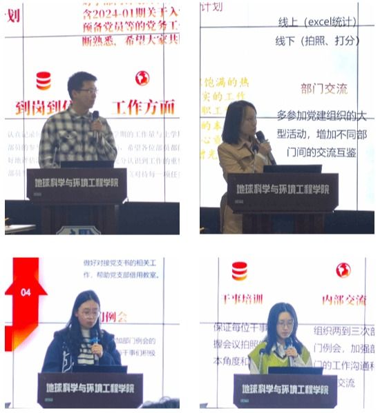 随后,各部门部长及干事上台总结上学期工作及本学期规划。学习部计划本学期认真记录到岗部员的参与,加强部员充分认识到工作的重要性;监管部提出要多参加党建组织的大型活动,增加不同部门间的交流借鉴;活动部同地学青协商量将由韩国漫画