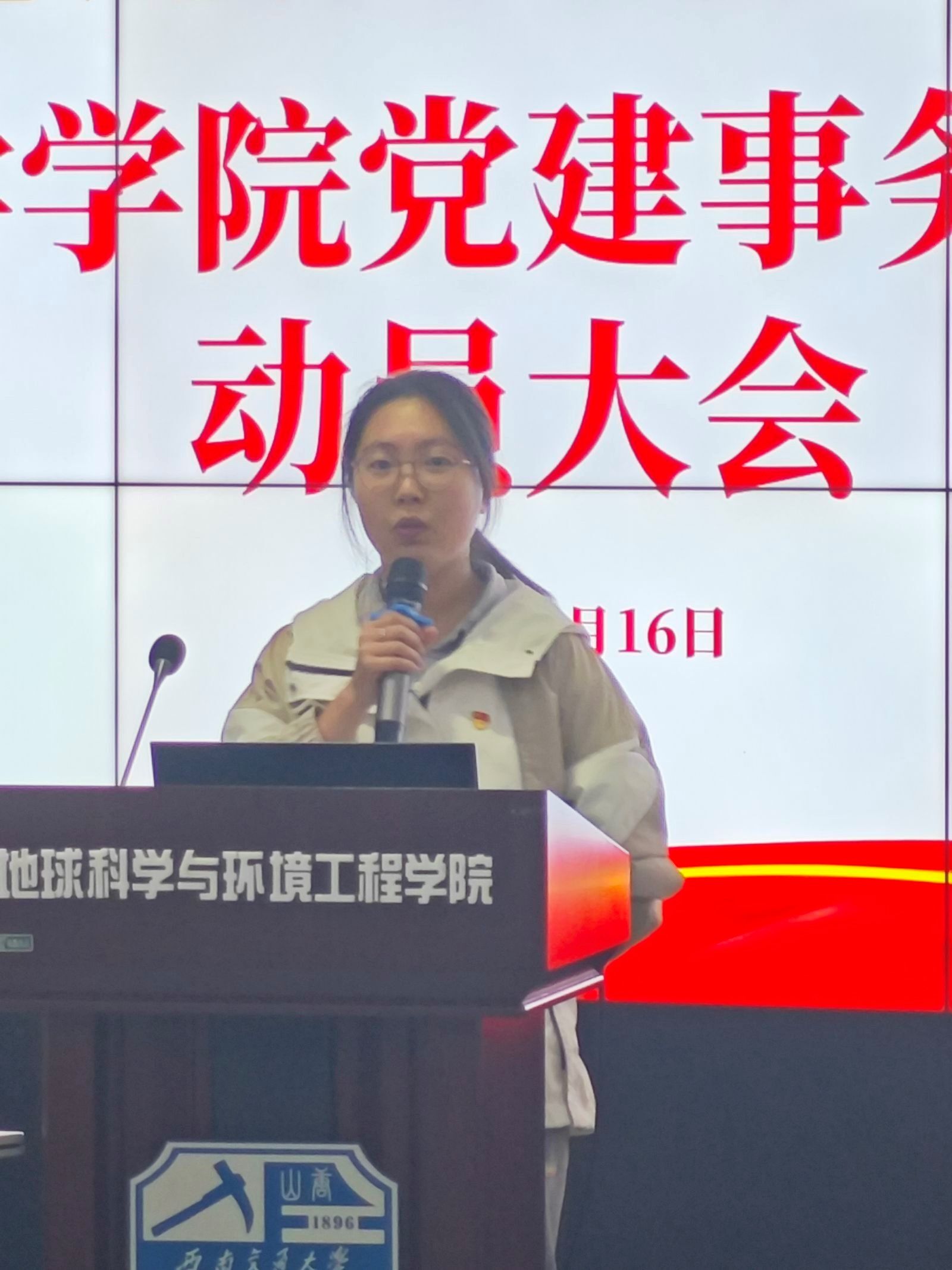 首先周妍利为大家介绍了本次大会的主要流程及参与会议的老师与干部。随后,党建事务中心胡佳慧老师致辞。胡佳慧老师亲切地问候在场的全体成员,对各部门的工作进行评价并感谢大家上学期的努力工作。她还列举了本学期的主要工作,包括毕业生党组织关系转接和学院变更导致管理办法需要做出更改等大型事务性工作,借用“一年之计在于春”来表示对本学期工作的期待。