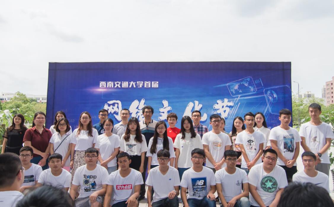 本科2016级党支部全员在标有“西南交通大学首届网络文化节的宣传展板前进行了合影留念,并相互交流了学习心得。