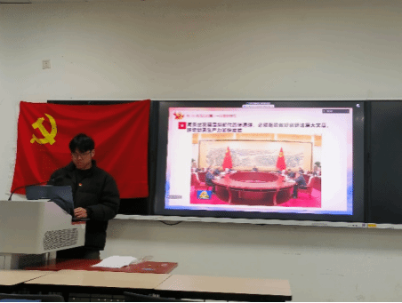20243719:0022级环境第二党支部于X4129教室顺利开展了3月份主题党日活动,活动的主要学习内容包括习近平总书记在“中共中央政治局第十一次集体学习”时的重要讲话精神、学习“厚植爱国情怀 培养时代新人”文章以及学习《党史学习教育工作条例》三个部分,会议应到党员12人,实到党员10人。会议由支部书记邱建宏同志主持。