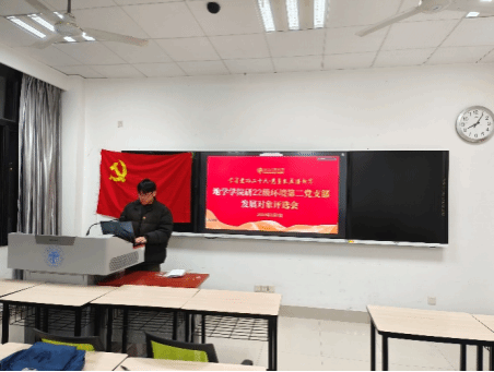 2024年3月7日20:00,研22级环境第二党支部于X4129教室成功召开发展对象评选大会,会议由党支部书记邱建宏主持。2名入党积极分子参选,与会党员10人,与会有投票权党员9人,大会有效。