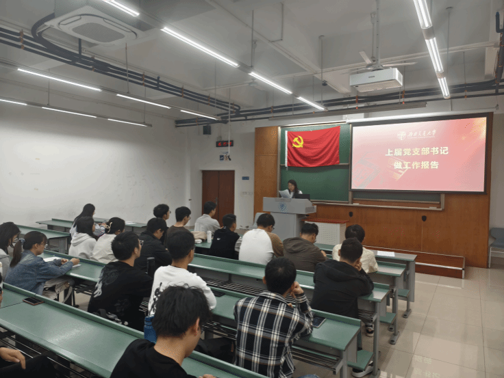 其次,上届党支部书记薛怡然同志代表支委会进行了工作报告,包括支部教育党员情况、管理党员情况、宣传师生情况、支部工作实效、支部工作亮点等内容。总结过去,展望未来,为支部新一年的工作注入了全新的动力。