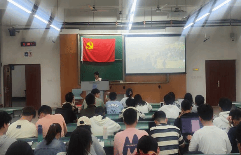理论学习后,党支部书记带领全体党员在教室内观看了红色电影《望道》。此电影刻画了20世纪20年代以陈望道为代表的一批知识分子群像,将他们的个人命运融入建党、抗日、建国等宏大历史叙事。以陈望道先生的生平事迹为线索,以总书记回信中提到的“心有所信,方能行远”为主题,努力讲好以陈望道为代表的青年知识分子追寻真理、坚守大道的青春故事,表达主流价值、体现历史厚重的同时兼具可看性。观影结束后,全体党员同志爱国热情高涨,深感“生逢其时,重任在肩”,定要“不负青春,不负韶华”,将个人价值的实现落实到报效祖国的实际行动中去,为实现中华民族伟大复兴的中国梦而不懈奋斗!
