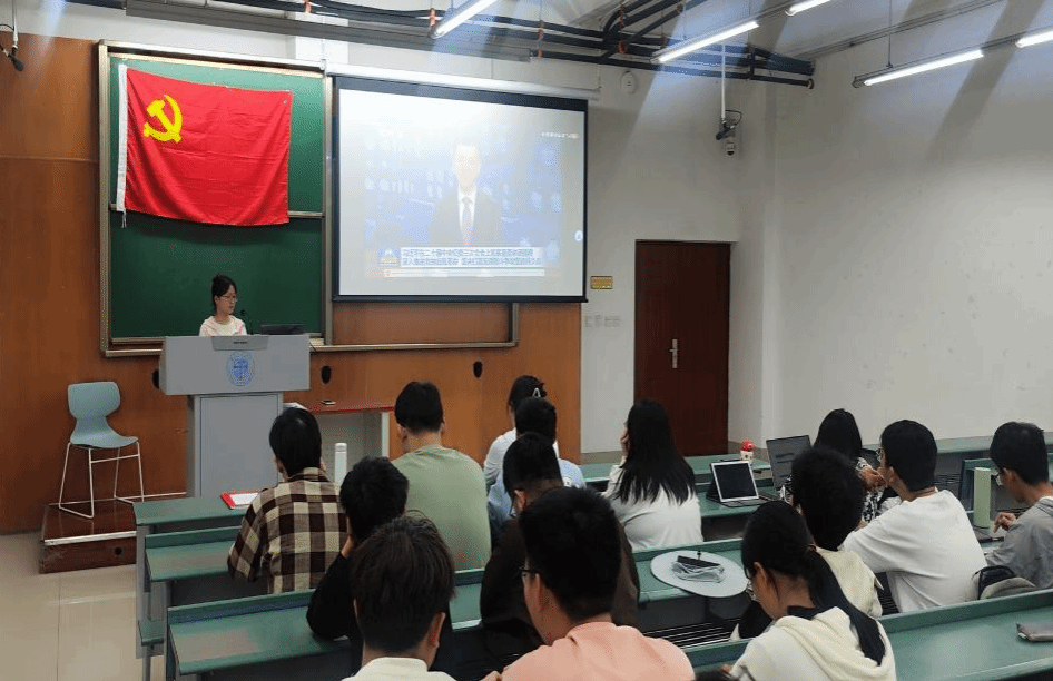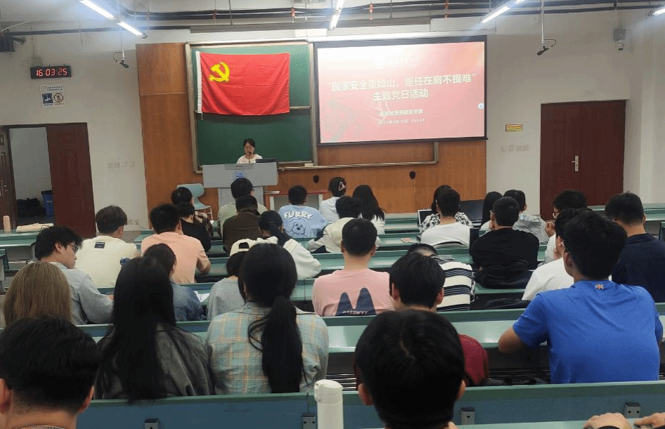 2024年4月11日下午16:00,本科地质资勘党支部于教室X4155组织开展了“国家安全重如山,重任在肩不畏难”主题党日活动。此次活动由本科地质资勘党支部书记刘伟婷同志主持,采用“理论学习+实践锻炼”形式开展。理论学习内容主要包括以下3点:1.深入学习贯彻习近平总书记在二十届中央纪委三次全会上的重要讲话;2.习宣传习近平总书记关于总体国家安全观的重要论述;3.认真学习《中国共产党纪律处分条例》。实践锻炼部分通过观看红色电影《望道》,进一步加深支部党员对中国共产党的理解与认识。支部共有39名党员同志积极参会。