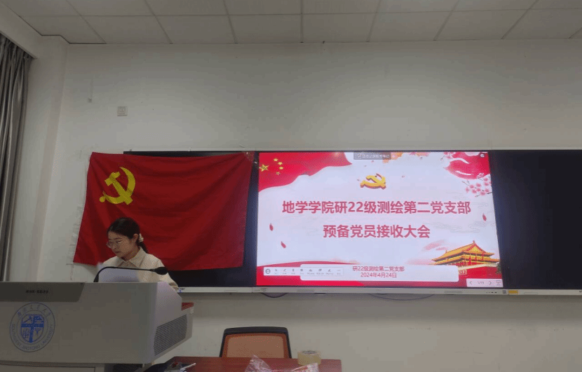 2024年4月24日19:30,研22级测绘第二党支部于X4129召开预备党员接收大会,对郭治豪、汪宇两位同志的接收问题进行讨论和表决。本次大会,支部实际到会13名正式党员,2名未到党员进行书面表决,2名预备党员参会。