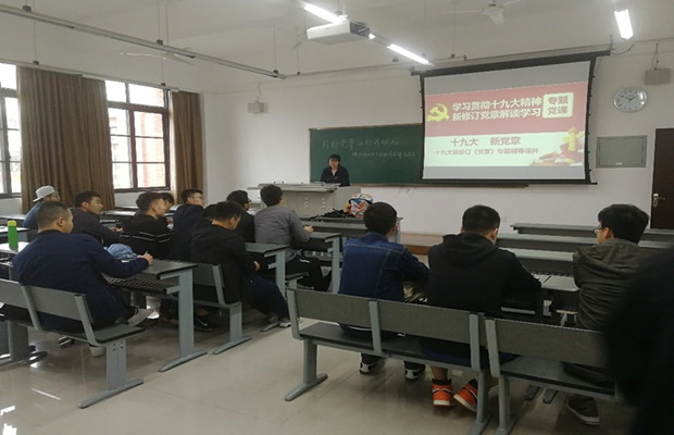 会议开始后,王丹带头对新党章进行了学习,讲述了党中央根据新形势下的新任务对党章进行的十三个重大修改部分、以及党章中的体现的鲜明特征和重大理论观点、战略思想。新党章的修改体现了马克思主义执政党与时俱进的理论勇气,体现了中国特色社会主义迈入新时代的客观要求,体现了我们党勇于自我革命、从严管党、治党的最鲜明品格,必将把我党的建设向新的伟大工程推进。