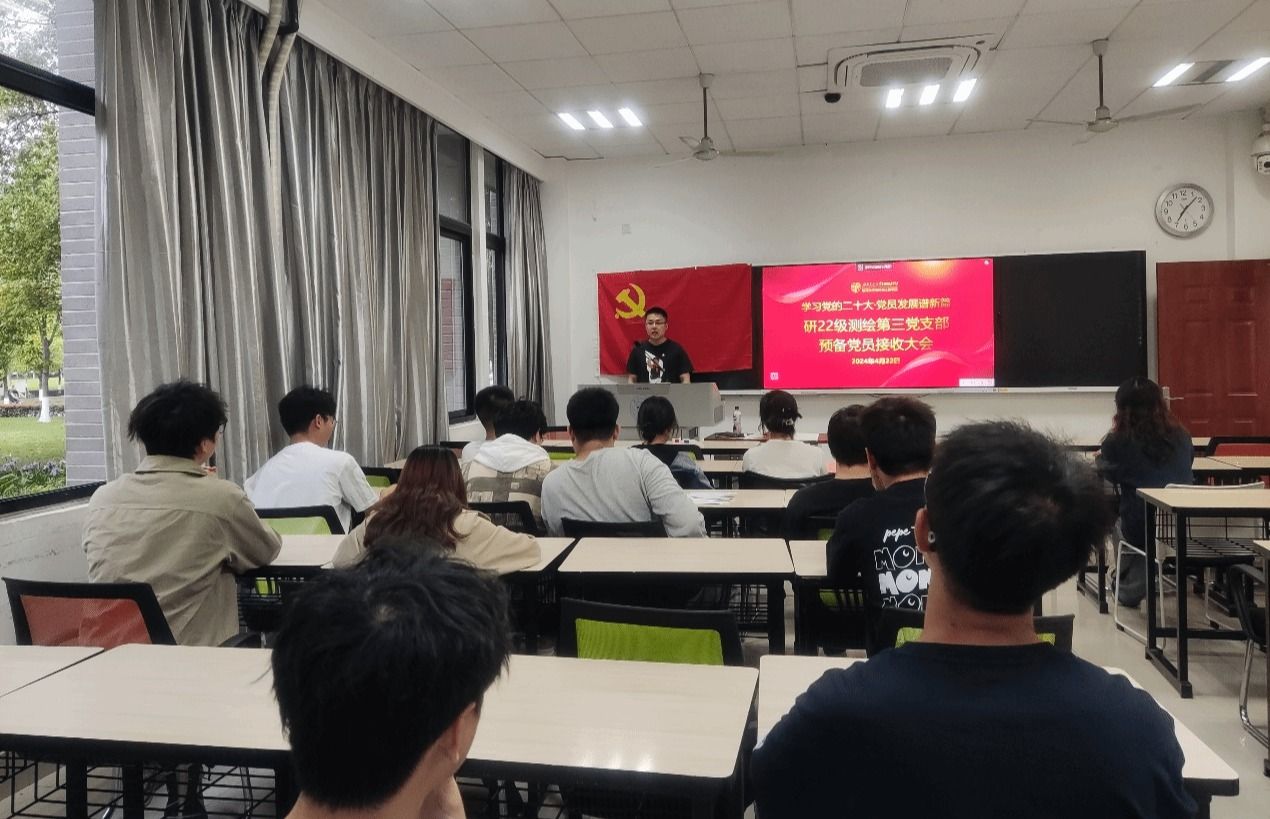 研22级测绘第三党支部在X4129教室顺利召开预备党员接收大会,本次会议的主题:讨论是否接收李炎秋同志为预备党员。会议由党支部书记刘翔同志主持,支部所有党员均参与。
