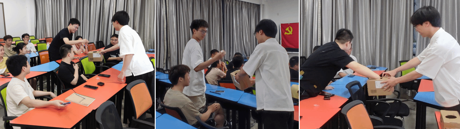 在理论学习结束后,为检验大家对《条例》的学习成果,支部开展了“知识炸弹”答题活动。与会的支部成员共分为三个小组,每个小组轮流回答,共30题,答对问题的同学可获得一次奖品抽取机会和“炸弹”抽取机会,“炸弹”包括加分和扣分,可选择留下或赠与其他组,最终得分最高的小组获得抽取额外大奖的机会。问题涵盖了党纪中的政治纪律、组织纪律、廉洁纪律、群众纪律、工作纪律、生活纪律,各学习小组兴致高昂,激烈角逐。