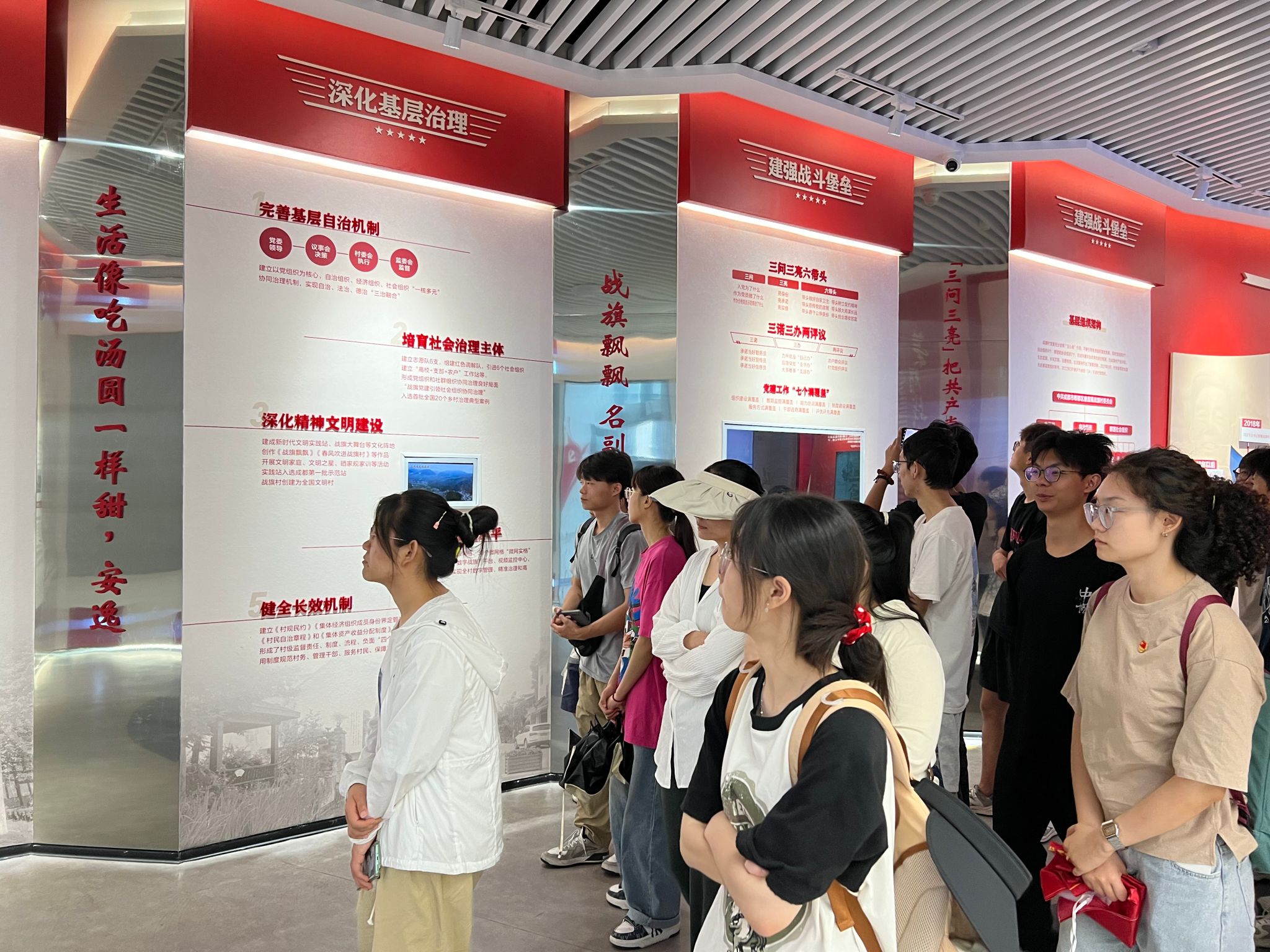 到达战旗村后,支部党员随着讲解员清楚、精彩的讲解一路从战旗初心馆,战旗纪检阵地,战旗村家风馆再到乡村十八坊廉洁文化沁润基地开展了一段党风廉政教育之旅。